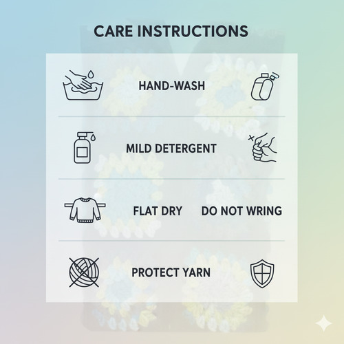 | Instructions | Do not bleach, Do not iron directly, Avoid harsh chemicals or fabric softeners, Handmade crochet may show slight variations in pattern and size |