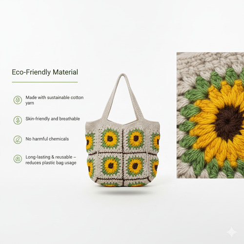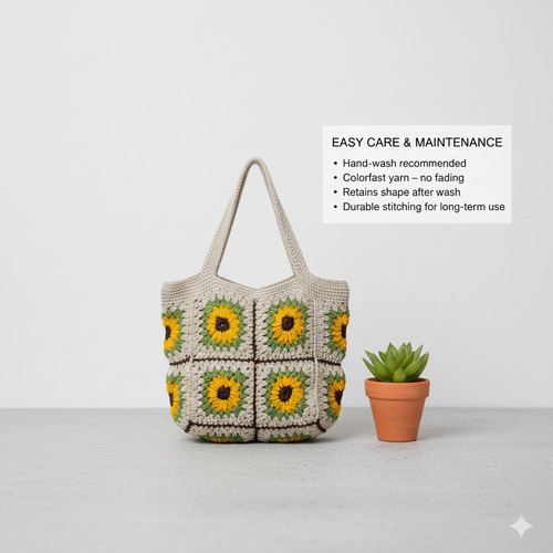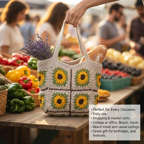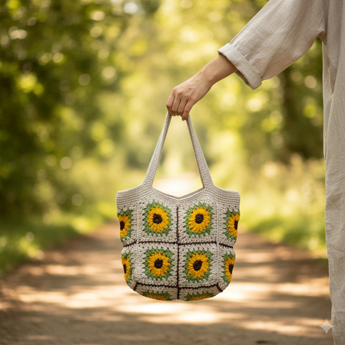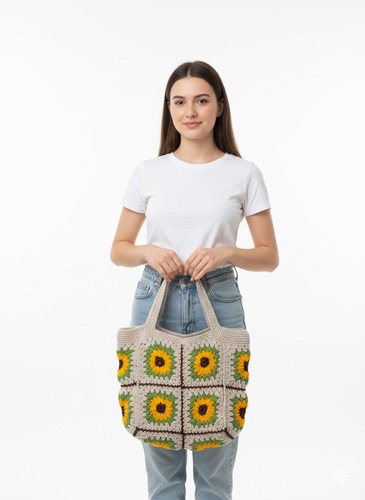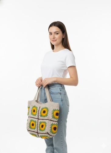 Absolutely gorgeous bag! The sunflower design makes it stand out, and the crochet work is superb.